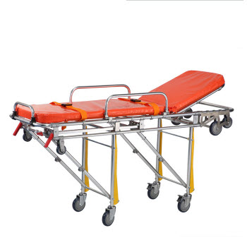 RC-A4救護車擔架(多變位)詳細描述:1. 該產品采用優質鋁合金材料制成,配備海綿軟墊,重量輕,安全可靠。2. 擔架前端裝有兩個上車輪。3. 通過控制兩段把手,調節擔架多個角度和高度,僅需一人就可上...